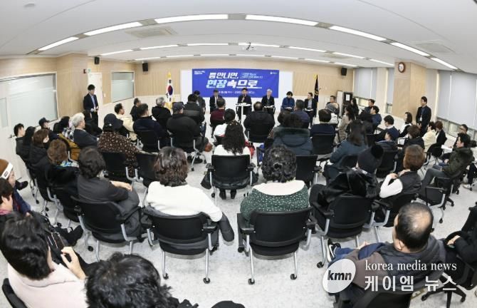(케이엠뉴스) 부천시는 24일 오정구청 대회의실에서 제7차 ‘틈만나면, 현장속으로’를 열고, 경인고속도로 인근 소규모주택정비사업 구역의 방음벽 설치 민원 해결을 위한 주민 의견을 청취했다.