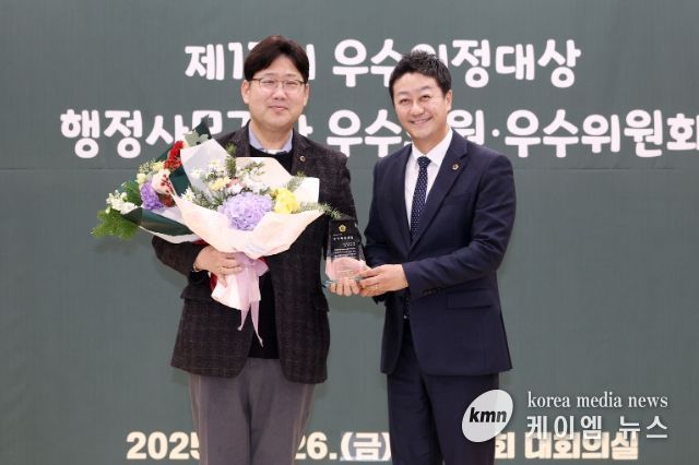 '우수의정대상'은 대한민국시도의회의장협의회가 매년 전국 광역의회의원을 대상으로, 주민참여 확대, 조례 제정, 지역현안 해결, 의정발전 기여도 등을 종합 평가해 시상하는 권위 있는 상이며, 김 의원은 2025년 한 해 동안 예산 감시, 공공기관 운영 점검, 도민 생활 밀착형 정책 제안 등 전방위 의정활동의 성과를 높이 평가받은 결과로 알려졌다.