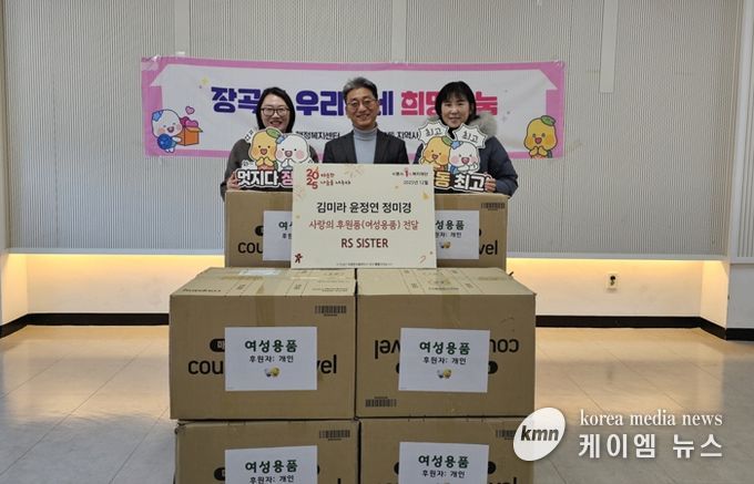 (케이엠뉴스) 시흥시 장곡동 행정복지센터는 26일 개인 후원자 김미라, 윤정연, 정미경씨가 관내 취약계층을 위해 260만 원 상당의 여성용품을 후원했다고 전했다.