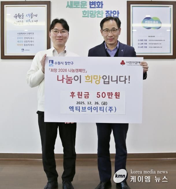 (케이엠뉴스) 수원시 장안구는 지난 26일 송죽동 소재 엑티브아이티(주)가 기부금 50만 원을 전달했다고 밝혔다. 이번 기부는 장안구 관내 어려운 이웃을 돕기 위한 것으로, 지역사회에 온정을 나누는 뜻깊은 자리다.