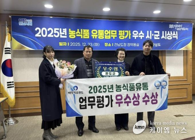 (케이엠뉴스) 완도군이 전라남도 주관 '2025년도 농식품 유통 업무 평가'에서 ‘우수상’을 수상했다.