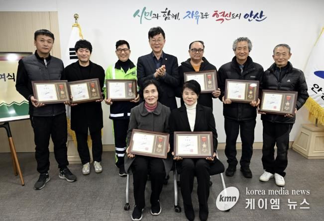 이번 표창은 관내 생활폐기물 수거·운반 업무를 통해 쾌적한 도시환경을 책임져온 환경미화원 4명과 안산시청 등 청사 내 환경미화 업무를 성실히 수행해 온 환경미화원 4명에게 각각 수여됐다.