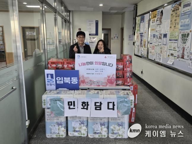 (케이엠뉴스) 지난 26일, 당수동 소재 ‘민화담다’는 입북동 행정복지센터를 방문해 라면 20박스, 휴지 10개를 전달했다.