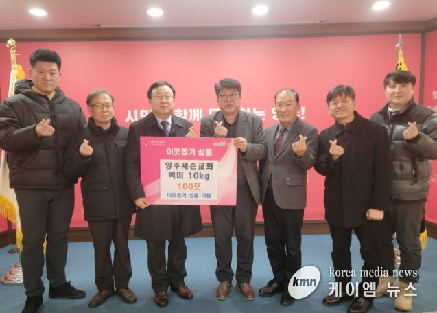 (케이엠뉴스) 양주새순교회가 30일 연말을 맞아 어려운 이웃들의 식탁에 온기를 더하고자 백미 10kg 100포를 백석읍에 기부했다.