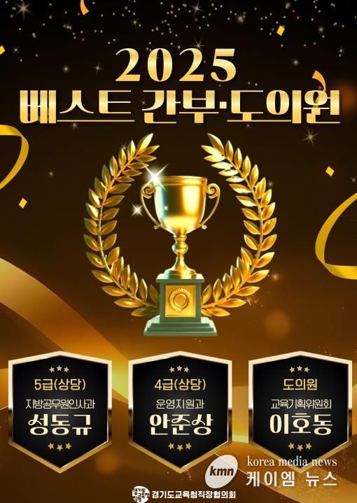 (케이엠뉴스) 경기도교육청 직장협의회는 소통과 협력을 기반으로 한 조직문화 정착과 활기찬 직장 분위기 조성을 위해 '2025년 베스트 간부 및 경기도의원'을 선정했다고 12월 30일 밝혔다.