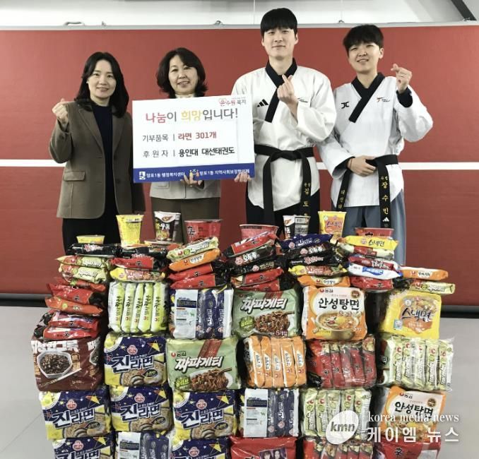 (케이엠뉴스) 수원시 영통구 망포1동은 지난 31일, 용인대 대선태권도에서 어려운 이웃에게 전해달라며 수련생들이 모은 라면 301개를 후원했다고 밝혔다.