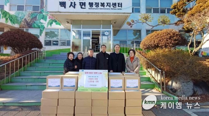 (케이엠뉴스) 이천시 백사면 조읍리에 소재한 반석교회는 연말을 맞아 지역의 어려운 이웃을 돕고자 2025년 12월 30일 백사면행정복지센터에 라면 60박스(총 1,200봉)를 기탁했다.