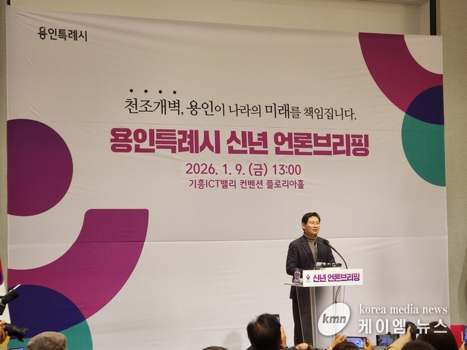 이상일 용인특례시장은 9일 13시 기흥 ICT 컨벤션 플로리아 홀에서 출입 기자 300여 명이 모인 가운데 ” 천조개벽“ 용인이 나라의 미래를 책임진다. 는 슬로건으로 2026 신년 언론브리핑을 개최했다.