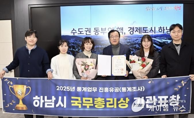 (케이엠뉴스) 하남시는 국가데이터처가 주관하는 통계조사에서 통계업무 발전에 기여한 공로를 인정받아 2026년 1월 9일 통계인재개발원에서 ‘2025년 통계업무 진흥유공’부문 국무총리 기관표창을 수상했다고 밝혔다.