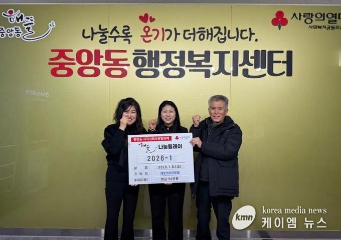 이번 기탁은 중앙동에서 추진 중인 ‘해뜰릴레이’의 첫 번째 나눔으로, ‘해뜰릴레이’는 후원금과 후원품 기부자를 중심으로 릴레이 형식의 나눔을 이어가며 기부 문화 확산과 지속적인 이웃사랑 실천을 도모하는 사업이다. 특히 이번 후원은 2026년 병오년 새해를 여는 첫 해뜰릴레이로, 지역사회에 따뜻한 나눔의 의미를 더했다.