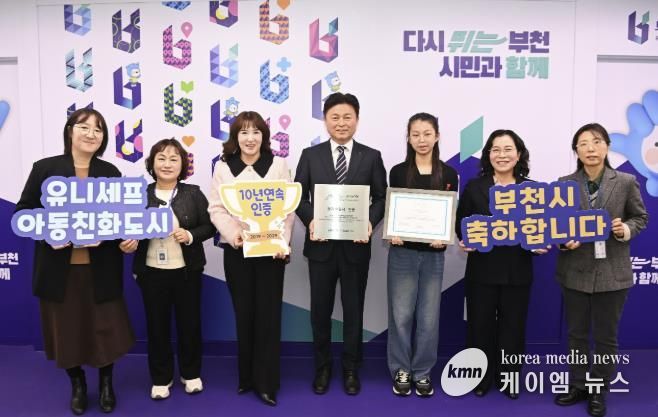 (케이엠뉴스) 부천시는 유니세프 한국위원회로부터 ‘유니세프 아동친화도시’ 인증을 갱신했다고 14일 밝혔다. 이번 인증은 2019년 12월 최초 인증에 이어 자격을 유지한 것으로, 유효기간은 2029년 12월 30일까지다.