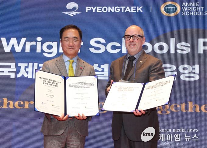 (케이엠뉴스) 평택시는 15일 평택아트센터에서 미국 워싱턴주 타코마 소재 사립학교 애니 라이트 스쿨(Annie Wright Schools)과 국제학교 설립·운영을 위한 협약(MOA·당사자 간 권리와 의무를 정한 계약)을 체결하고 협약식을 개최했다. 이날 행사에는 정장선 평택시장과 데이비드 오버튼 애니 라이트 스쿨 이사장 및 제이크 과드놀라 총교장을 비롯해 국회의원, 시·도의원, 유관기관장, 주한미군, 삼성 관계자, 외국인투자기업 관계자, 지역 주민 등 약 200명이 참석했다.