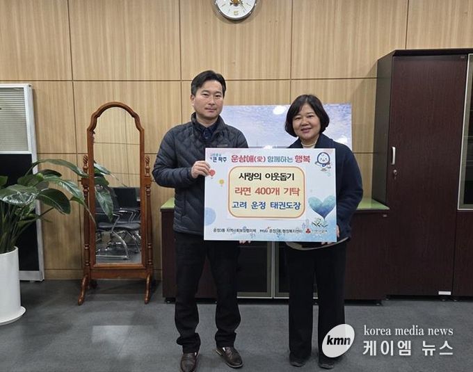 이번 기탁은 고려 운정 태권도장 원생들이 각자 라면을 준비해 자발적으로 참여한 나눔 활동으로, 아이들이 이웃사랑과 나눔의 가치를 몸소 배우는 뜻깊은 시간으로 마련됐다. 기탁된 라면 400개는 운정3동 관내 취약계층과 도움이 필요한 이웃들에게 전달될 예정이다.
