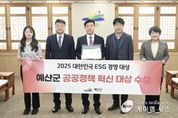 (케이엠뉴스) 예산군은 국회의원회관 제1소회의실에서 열린 제2회 2025 대한민국 ESG 혁신 어워즈(대한민국 ESG 경영대상) 시상식에서 공공정책 혁신 부문 대상을 수상했다고 23일 밝혔다. 이번 수상은 전국 기초지방자치단체 가운데 예산군이 유일하게 대상에 선정돼 의미를 더했다. 2025 대한민국 ESG 경영대상은 환경(E), 사회(S), 지배구조(G)를 비롯해 융합·산업혁신, 미래·글로벌, 공공, 소비자, 기술혁신, 특별상 등 총 9개 부문에서 26개 수상자를 선정해 시상하고 있다. 이번 시상식은 2025 대한민국 ESG 경영대상위원회와 바론교육이 주최하고 K-ESG 기준평가원(KES)이 주관해 열렸으며, 기업과 공공기관의 ESG(환경·사회·지배구조) 경영 우수사례를 발굴하고 확산하기 위해 마련됐다. 군은 지방자치단체 가운데 선도적으로 ESG 행정체계를 구축하고 선언적 수준에 머물던 ESG 정책을 제도·예산·성과 중심의 실행체계로 전환한 점에서 높은 평가를 받았다. 특히 ESG 기반 조례 40건 이상을 제·개정해 제도적 기반을 마련하고, 조례–정책–예산–성과관리로 이어지는 행정 전