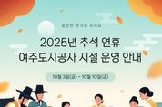 (케이엠뉴스) 여주도시공사는 2025년 추석 명절을 맞아 고향을 찾는 귀성객과 시민들의 편의를 위해 주요 시설 운영시간 조정, 무료개방 등 특별 서비스를 제공한다고 2일 밝혔다. 공사는 우선, 추모객이 집중되는 여주추모공원의 추석기간(5일~7일) 운영 시간을 기존 오전 9시~오후 6시에서 오전 7시~오후 6시로 2시간 조기개장하여 확대운영한다. 이를 통해 명절연휴 기간 원활한 참배가 가능하도록 편의를 도울 예정이다. 또한, 시민과 방문객들의 주차 편의를 위해 공영주차장을 연휴기간(3일~9일) 전면 무료 개방한다. 이를 통해 귀성객과 지역 상권을 찾는 이용객들이 보다 편리하게 주차할 수 있을 것으로 기대된다. 교통약자 이동지원센터의 경우, 특별교통수단은 추석기간(5일~7일) 무료 운행하며, 바우처 택시는 정상 요금으로 운영된다. 공사는 교통약자의 이동권 보장을 위해 차량 안전 점검을 마치고 원활한 운행 서비스를 제공할 계획이다. 종합운동장 등 체육시설과 오학, 점동 파크골프장은 추석기간(5일~7일)에만 휴무이고 그 외 휴일은 정상운영하며, 이 중 파크골프장은 대체공휴일(8일)과 한글날에 무료 개방하여