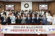 (케이엠뉴스) 경기도여주교육지원청은 10월 15일, 여주시의회 본회의장에서 '2025 여주 청소년교육의회 발표회 및 폐원식'을 개최했다. 이번 행사는 지난 6개월 동안 여주 청소년들이 직접 기획·참여한 사회참여활동 결과를 공유하고, 의정활동을 마무리하는 자리로 마련됐다. 이날 행사에는 김상성 교육장을 비롯해 박두형 여주시의회 의장과 여섯 명의 시의원, 청소년교육의회 의원 36명 및 학부모가 참석해 청소년들의 성장과 노력을 함께 축하했다. 여주교육지원청 김상성 교육장은 격려사에서 “청소년의 목소리가 지역사회를 변화시키는 힘이 된다”며 “여러분의 작은 실천이 여주의 미래를 밝히는 등불이 되기를 바란다”고 전했다. 또한 박두형 여주시의회 의장은 “여주시의회도 여러분의 제안을 귀 기울여 듣고, 청소년이 행복한 도시를 만드는 데 함께하겠다”고 격려했다. 이날 발표회에서는 청소년의회 5개 상임위원회(환경·복지·인성·시설·교육)가 각 분과별로 진행한 사회참여활동과 정책제안서를 공유했다. 환경위원회는 ‘지속 가능한 여주를 위한 생활 속 실천 방안’을, 복지위원회는 ‘보행자 안전을 위한 정