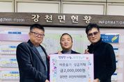 (케이엠뉴스) 강천면 주민자치위원회는 지난 24일 강천면 행정복지센터에 이웃돕기 성금 200만원을 기탁했다. 이번 성금은 ‘제3회 강천섬 힐링 문화축제’에서 강천면 주민자치위원회가 직접 호두과자와 커피를 판매하여 얻은 수익금 중 일부를 지역사회에 환원하기 위해 마련된 것으로, 주민들의 봉사와 노력이 담겨 더욱 뜻깊었다. 전달식에서 남기용 주민자치위원장은 “주민자치위원회가 축제에서 땀 흘려 얻은 수익금을 지역사회의 어려운 분들과 함께 나누게 되어 큰 보람을 느낀다”며 “앞으로도 주민자치위원회가 나눔 실천을 통해 더불어 사는 강천면 공동체의 가치를 높이는 데 앞장서겠다”라고 말했다. 배인수 강천면장은 “축제를 성공적으로 마무리하고, 그 소중한 수익금을 지역사회에 환원해 주신 주민자치위원회에 깊이 감사드린다”며 “강천면 주민들의 자발적인 나눔 정신과 공동체 의식이야말로 우리 면의 큰 자산이다. 기탁해 주신 성금은 취약계층 복지 증진을 위한 사업에 의미 있게 사용하겠다”라고 말했다.