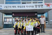 (케이엠뉴스) 지난 9월 23일, 미양면 새마을지도자·부녀회 임원 11명이 함께 무연분묘(보체리 산58) 예초 작업을 실시했다. 이번 활동은 연고자가 없어 관리되지 않던 무연분묘 9기의 잡풀을 제거해 주변을 깨끗이 정리하고, 무덤 앞에 차린 제사상에 절을 올리며 고인들의 넋을 기리는 의미를 더했다. 매년 새마을지도자와 부녀회는 찾는 이 없이 방치된 보체리 무연분묘를 예초하여 ‘효의 고장 미양’의 정신을 몸소 실천하고 있어 주민들의 귀감이 되고 있다. 마영호 새마을지도자협의회장은 “매해 추석 전에 무연분묘를 찾아 풀을 제거하고 고인들께 인사드리며 큰 보람을 느낀다”며 “작은 일이라도 우리 면을 위해서라면 힘을 모으겠다”고 말했다. 이날 자리에 함께한 손인철 미양면장은 “새마을지도자와 부녀회원들의 아름답고 뜻깊은 손길에 감사드린다”며 “이러한 정성이 모여 미양면을 더욱 따뜻하고 살기 좋은 지역으로 만든다. 앞으로도 활동을 적극 지원하겠다”고 전했다.