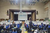 (케이엠뉴스) 오산시는 지난 9일 오산중학교 강당에서 3학년 학생들을 대상으로 ‘탄소중립 환경골든벨’을 개최했다고 밝혔다. 이번 행사는 환경보호의 중요성과 지속 가능한 미래에 대한 관심을 높이기 위해 마련됐다. ‘환경골든벨’은 오산시의 ‘찾아가는 맞춤형 탄소중립 실천교육’ 프로그램의 일환으로, 기후위기 속 탄소중립 실천의 필요성을 학생들에게 쉽고 흥미롭게 전달하기 위해 기획됐다. 이날 행사에는 오산중학교 3학년 학생 230여 명이 참여해 높은 관심을 보였다. 문제는 탄소발자국, 재생에너지, 분리배출, 탄소중립 정책 등 다양한 환경 이슈로 구성됐으며, 학생들은 퀴즈를 통해 탄소중립 실천에 한 걸음 더 다가가는 시간을 가졌다. 2022년 개정 교육과정에서 환경교육이 의무화됨에 따라 기후변화와 탄소중립 등 환경 대응 교육이 학교 현장에서 강화되고 있다. 시는 이번 프로그램이 지역사회와 학교가 함께하는 실천교육이라는 점에서 더욱 의미가 크다고 설명했다. 환경골든벨에 참여한 한 학생은 “탄소중립이 막연하게 느껴졌는데, 오늘 퀴즈를 통해 쉽고 재미있게 이해할 수 있었다”며 “일상에서 실천할 작은 활동들을 꾸준