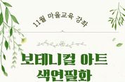 (케이엠뉴스) 인천광역시교육청신트리도서관은 11월 교육기부 미술 프로그램 ‘보테니컬 아트 색연필화’를 운영하며, 참가자 10명을 10월 24일 오전 10시부터 모집한다. 이번 프로그램은 성인을 대상으로 색연필을 활용한 보테니컬 아트의 기본기를 배우고, 식물의 세밀한 관찰력과 색채 감각을 향상시키기 위해 마련됐으며, 수업은 11월 4일부터 25일까지 매주 화요일 오후 1시 30분부터 3시 30분까지 4회에 걸쳐 진행된다. 참가 신청은 신트리도서관 누리집에서 선착순 진행되며, 자세한 사항은 마을교육지원과로 문의하면 된다.