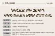 (케이엠뉴스) 인천광역시교육청중앙도서관은 시민들의 인문학적 소양을 높이고 평화의 가치를 확산하기 위해 오는 11월 ‘인문 아카데미’를 운영한다. 이번 아카데미는 ‘벌거벗은 세계사’, ‘역사저널 그날’ 등에 출연한 류한수 상명대학교 교수를 초청해 ‘전쟁으로 읽는 20세기: 세계와 한반도의 운명을 결정한 전쟁’을 주제로 11월 6일부터 27일까지 매주 목요일 오후 7시, 4회에 걸쳐 진행된다 류 교수는 제2차 세계대전의 배경과 전개 과정을 세계사적 시각에서 살펴보며, 전쟁이 한반도와 세계 현대사에 미친 영향을 입체적으로 조명할 예정이다. 또한 11월 18일에는 인천난정평화교육원, 망향대, 대룡시장 등을 방문하는 평화체험 프로그램 ‘격강천리라더니!’를 운영해 시민들이 역사적 현장을 직접 둘러보며 평화의 소중함을 체험할 수 있도록 했다. 참가 신청은 10월 23일 오전 10시부터 중앙도서관 누리집에서 가능하며, 자세한 사항은 종합자료실로 문의하면 된다.