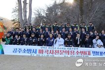 (케이엠뉴스) 충남소방본부는 5일 공주시 마곡사 일원에서 ‘마곡사 전문의용소방대 발대식 및 산불대응 합동훈련’을 실시했다. 전문의용소방대 운영을 공식화하고, 전문활동체계 확립을 위한 이날 발대식에는 성호선 소방본부장과 전문의용소방대원, 송무경 공주시 부시장 등 130여 명이 참석해 앞으로의 활동을 응원했다. 이어진 합동훈련은 도 소방본부·공주시·마곡사 관계자 등이 참여한 가운데, 마곡사 남서쪽 2.5㎞ 지점에서 발화된 산불이 확산되는 상황을 가정해 진행했다. 참가자들은 △대형 소방차량을 이용한 마곡사 입구 방어 △소방력과 산불전문예방진화대의 지상 진화 △소방·충남도 헬기 공중 진화 △마곡사 시설 보호를 위한 사전 주수 등 훈련을 통해 대응 역량을 높였다. 마곡사는 유네스코 세계유산이자 국보 등 21점의 지정문화재를 보유한 전통사찰로, 산림과 인접해 화재 발생 시 피해가 크게 확산될 우려가 있어 전문 대응체계 구축 필요성이 꾸준히 제기돼 왔다. 이에 도 소방본부는 사찰 내 지형·건축·문화재 특성을 잘 아는 지역 주민을 중심으로, 지난 9월 18일 ‘마곡사 전문의용소방대’를 구성하고 정식
