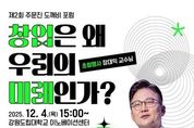 (케이엠뉴스) 강원도립대학교는 지역주민과 학생을 위한 개방형 지식 교류 프로그램인 '주문진 도깨비포럼: 우리 시대의 명사가 전하는 말'의 두 번째 행사를 오는 12월 4일 오후 3시 강원도립대학교 이노베이션센터에서 개최한다. '주문진 도깨비 포럼'은 ‘창업’을 주제로 진행되는 공개 강연으로, 학생‧지역주민 등 강연에 관심 있는 누구나 참여할 수 있다. 이번 강연에는 스타트업 분야에서 활발히 활동하고 있는 장대익 가천대학교 스타트업칼리지 학장이 초청명사로 나선다. 장대익 학장은 “창업은 왜 우리의 미래인가?”라는 주제로, 빠르게 변화하는 사회에서 창업이 개인의 성장 전략이자 경력 설계 방식이 될 수 있다는 관점을 제시한다. 강연은 2시간 가량 진행되며, 이후 참석자 간 교류와 소통을 위한 다과회가 이어진다. 강원도립대학교는 이번 포럼을 통해 지역 창업 생태계의 지속가능한 성장 가능성을 모색하고, 지역민과 학생들이 미래 직업 경로를 주도적으로 설계 할 수 있는 계기를 제공한다는 계획이다. 최종균 강원도립대학교 총장은 “주문진 도깨비 포럼을 지역을 위한 개방형 지식 공유 플랫폼으