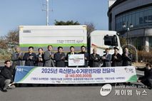 (케이엠뉴스) 가평군은 1일 가평축협에 축산분뇨 수거‧운반용 특수차량을 전달하고 친환경 축산환경 조성을 위한 협력 의지를 다졌다고 밝혔다. 이번 전달식은 농축산업 유관기관 간 협력사업의 일환으로 추진했다. 노후화된 기존 차량을 대체해 축산분뇨의 적기 수거 및 위생적인 처리를 통해 악취 민원 예방과 쾌적한 생활환경 조성을 위한 것이다. 구입한 진공흡입차량(버큠로리)은 축사 내 저장조 탱크의 공기를 제거해 진공상태를 만든 뒤 액체 분뇨 또는 슬러리 형태의 축산분뇨를 흡입‧수거하는 특수차량이다. 군은 기존 10년 이상 사용된 7.9㎘급 노후 차량을 8.3㎘급 신규 차량으로 대체함으로써, 보다 안정적이고 효율적인 수거가 가능할 것으로 기대하고 있다. 이번 특수차량 구입비는 총 1억4,000만원으로 가평군이 8,400만원을 지원하고, △가평축협 2,800만원 △농협중앙회 가평군지부 1,400만원 △가평군농협이 1,400만원을 각각 부담했다. 서태원 군수는 전달식에서 “이번 특수차량 도입을 통해 축산분뇨를 보다 신속하고 철저하게 처리할 수 있는 기반이 마련됐다”며 “앞으로도 유관기관과 적극 협력해