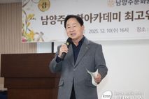(케이엠뉴스) 남양주시는 10일 남양주문화원사에서 시민 인문·문화교육 프로그램인 ‘문화아카데미 최고위과정 3기 수료식’을 개최했다고 밝혔다. 문화아카데미는 시민들에게 수준 높은 인문 교양 강좌와 지역 역사 교육을 제공하는 남양주문화원의 대표 교육사업으로, 지역의 문화 리더를 양성하는 산실로 자리매김하고 있다. 이날 수료식에는 주광덕 시장, 김경돈 남양주문화원장을 비롯해 제3기 수료생 및 총원우회장 등 60여 명이 참석해 문화 아카데미의 성공적 수료를 기념하는 뜻깊은 시간을 마련했다. 이번 3기 문화 아카데미는 지난 3월 개강해 12월까지 진행됐으며, 총 41명의 지역 문화리더를 배출했다. 교육과정은 남양주의 역사 인물 및 문화에 대한 강좌부터 일상 속의 AI, 트렌드 코리아까지 인문학과 실용 지식을 아우르는 폭넓은 주제로 구성돼 큰 호응을 얻었다. 행사는 현악4중주의 식전 공연을 시작으로 △학사 보고 △축사 △수료증 수여 △시상식 △발전기금 전달식 순으로 진행됐다. 시상식에서는 학업에 모범을 보인 최우수원우를 비롯한 7명의 수료생에게 상장이 수여돼 그간의 열정과 노고를 격려하는 시간이