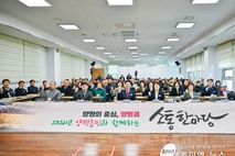 (케이엠뉴스) 양평군은 6일 새해를 맞아 군민들과 직접 소통하기 위한 ‘2026년 군민과 함께하는 소통한마당’의 첫 일정을 양평읍에서 시작하며 본격적인 읍·면 순회에 돌입했다. 이날 오전 양평읍사무소 2층에서 열린 소통한마당에는 전진선 양평군수와 김문희 양평읍장, 관계 부서장, 관내 기관·단체장, 양평읍민 등 100여 명이 참석해 지난해 양평읍의 주요 성과를 돌아보고 2026년 군정 운영 방향과 양평읍 발전 계획을 공유했다. 또한 지역 현안과 건의사항에 대해 의견을 나누는 소통의 시간도 마련됐다. 전진선 양평군수는 먼저 △남한강 테라스 준공 △양평물맑은시장 빛거리 조성 △양강섬 적석총 경기도 지정문화유산 추진 △양평종합체육센터 준공 △강동경희대병원·김란미즈산부인과 출산 진료 협약 등 지난해 양평읍의 주요 성과를 읍민과 공유했다. 이어 2026년 양평읍의 주요 계획으로 △경제 우선 전략에 따른 양평시장 상권 활성화 △남한강 테라스와 연계한 물안개공원, 갈산공원 등 관광자원화 형성 △양근천, 쉬자파크, 백운봉을 잇는 관광개발 마스터플랜 수립 △양근대교 확장 등 광역도로망 확충 계획 등을 제시하며 중장기 발전 방향을