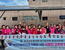 (케이엠뉴스) 포천시는 한국자유총연맹 포천시지회가 지난 21일 소흘읍행정복지센터에서 북한이탈주민을 위한 ‘사랑의 고추장 담그기’ 행사를 개최했다고 밝혔다. 이번 행사는 북한이탈주민의 지역사회 정착을 돕고, 이웃 간 따뜻한 정을 나누기 위한 나눔 행사로 마련됐으며, 김금순 여성회장의 주도 아래 30여 명의 회원이 참여해 정성껏 고추장을 담갔다. 이날 준비된 고추장은 북한이탈주민과 지역의 소외계층 가구 등에 전달될 예정이다. 한진수 한국자유총연맹 포천시지회장은 “앞으로도 지역의 어려운 이웃과 함께하는 다양한 봉사활동을 지속해 더불어 사는 포천과 따뜻한 공동체 조성에 앞장서겠다”고 밝혔다. 백영현 포천시장은 “고향을 떠나 새로운 삶을 시작한 북한이탈주민들이 지역사회에서 안정적으로 정착할 수 있도록 따뜻한 관심과 연대가 필요하다”며 “이웃을 위해 나눔을 실천해 주신 자유총연맹 회원 여러분께 깊이 감사드린다”고 말했다.