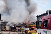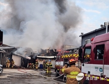 경기도 오산시 원동소재 대형마트에서 오늘(9일) 16시 18분 화재가 발생했다. 영상/김영진기자 오늘 화재 발생 최초 발화지점은 60평 창고동 컨베이어 쪽에서 발생한 것으로 추정하고 현재 조사 중이다. 화재 현장은 약 500평 규모의 대형매장과 창고 등 4개 동에 640평 규모의 대형마트다. 화재 발생 시 화재 현장에는 손님 30여 명과 직원 20여 명이 있었으나 자력으로 대피하여 인명피해는 없는 것으로 밝혀졌으며 화재 원인은 현재 조사 중이다. 오늘 화재 현장에 출동한 장비는 펌프차 6대, 탱크로리 5대, 화학차 1대, 구조 4대, 기타 7대 모두 23대가 출동 했으며 인력은 소방 72명, 경찰 10명, 한전 3명 총 85명이 투입됐다. 이날 화재 신고를 접수한 오산소방서는 화재접수 후 10분 만에 현장에 도착하여 신속한 대처로 큰불은 16시 58분경에 큰불을 진압하여 대형사고를 막았다. 영상/화재현장에서 소방관들이 대형 LPG통에 불이옮겨 붙지않도록 사투를벌이고있다.<영상/김영진기자> 사고 현장 바로 옆에는 대형 LPG 통이 있었으나 소방관들의 필사적인 노력으로 대형사고를 막았으며 화재로 인한 재산 피해는 현재 조사 중이다.