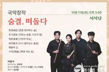 (케이엠뉴스) 광주문화재단(대표이사 노희용) 전통문화관은 오는 10월 11일 오후 3시, 토요 상설공연 22회차로 퓨전국악 단체 떠돌이의 '숨결, 떠돌다' 무대를 선보인다. ▷ 생과 사의 순환을 음악으로 풀어낸 퓨전국악 무대 사람은 태어나고, 관계를 맺으며 살아가고, 언젠가 떠난다. 그러나 떠난다고 해서 모든 것이 사라지는 것은 아니다. 우리가 남긴 기억과 흔적은 주변 사람들의 마음속에서 순환하며, 삶과 죽음의 경계를 허문다. 퓨전국악 단체 떠돌이의 '숨결, 떠돌다'는 만남과 이별, 떠돎과 순환이라는 삶의 본질을 음악으로 풀어낸 무대다. 한국 전통 음악의 뿌리를 기반으로 하면서도 현대적 감각을 더한 이 공연은, 익숙하면서도 새로운 음악적 경험을 통해 생과 사의 의미를 되새기는 시간을 선사한다. 이번 공연은 망자의 한을 씻고 극락왕생을 기원하는 남도의 대표적인 무속 의례인 진도 씻김굿의 음악적 요소를 현대적으로 재해석한 작품이다. 대금, 판소리, 국악 타악에 재즈 피아노와 일렉 베이스를 결합한 퓨전 편성으로, 전통 굿의 의식적 분위기를 공연 형식으로 풀어내 일반 관객들에게 간접적 경험을 제공한다. 혼을 맞이하는 의식에서 시