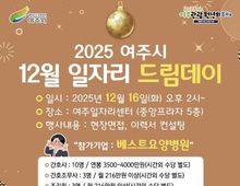 (케이엠뉴스) 여주시는 오는 12월 16일 오후 2시 여주일자리센터(세종로 14번길 18, 중앙프라자 5층)에서 ‘2025년 마지막 여주시 일자리드림데이’를 연다. 이번 행사는 가남읍에 있는 베스트요양병원이 참여해 간호사 10명, 간호조무사 3명, 물리치료사 1명, 조리원 3명, 환경미화원 1명 총 18명을 채용한다. 지원 자격은 간호사·간호조무사 자격소지자, 신경발달치료(NDT)와 보바스(BOBATH) 교육을 이수한 물리치료사 등이다. 올해 마지막 행사인 이번 일자리드림데이는 의료 돌봄 분야의 채용이 이뤄져 지역 사회의 안정적인 돌봄 인력 확보에도 도움이 될 것으로 보인다. 시 관계자는 “2025년 동안 일자리드림데이에 참여해 준 모든 관내 기업체와 구직자에게 감사한 마음을 전한다”라며, “올해 마지막 행사에서도 구직자가 따뜻한 연말을 보낼 수 있도록 최선을 다하겠다”라고 말했다