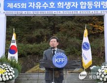 (케이엠뉴스) 이상일 용인특례시장은 6일 처인구 양지면 대대리 ‘자유수호희생자위령탑’에서 열린 제45회 자유수호희생자 합동위령제에 참석해 희생자들을 추모했다. 이날 행사엔 이상일 시장을 비롯한 박창무 한국자유총연맹 용인시지회장 등 지역 내 단체 관계자와 시민 50여 명이 참석했다. 행사는 희생자를 기리기 위한 추도 의식, 추념사·추도사, 조가 연주와 제창, 진혼무, 헌화 순으로 진행됐다. 이상일 시장은 추도사에서 “고대부터 자유는 인간에게 가장 중요한 가치로 자유를 얻지 못하면 우리는 평등해질 수가 없다”며 “선배 세대들이 목숨을 바치면서 자유를 지켜낸 모습만 봐도 자유는 그냥 얻어진 것이 아니다”라고 강조했다. 이 시장은 “우리가 매년 위령제를 지내는 것은 1990년 9월 21일 희생당하신 분들의 고귀한 넋을 우리가 면면히 잘 이어받아 선배 세대가 소중하게 지킨 이 나라를 더욱더 발전시켜 후배 세대들에게 물려주기 위함이라고 생각한다”며 “호국영령의 넋이 하늘나라에서도 늘 평안을 누리시길 기원드린다”고 했다. 자유수호희생자위령탑은 1950년 9월 21일 용인·화성·수원 등지에서 끌려와 양지면 대대리