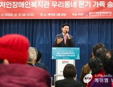 (케이엠뉴스) 용인특례시는 12일 용인시처인장애인복지관이 한해 동안 나눔을 실천한 후원자와 자원봉사자를 위한 ‘우리동네 온기가득 송년회’를 열었다고 밝혔다. 이 행사에 참석한 이상일 용인특례시장은 장애인복지를 위해 헌신한 후원자와 자원봉사자, 복지관 관계자들을 격려하고, 감사의 마음을 나눴다. 이상일 시장은 “처인장애인복지관은 장애인 복지 수준 향상을 위해 훌륭한 활동을 해왔다”며 “이 자리에 계신 후원자와 자원봉사자 여러분의 헌신적인 노력은 장애와 비장애의 벽을 허물고, 장애인에게 희망을 전달했다”고 말했다. 이 시장은 “용인특례시는 장애인 복지 활동과 정책을 선도적으로 운영하고 있고, 장애인을 위한 시설개선에도 적극 노력하고 있다”며 “장애인복지관에 많은 후원이 모이고 있고, 이 마음이 용인특례시를 따뜻한 공동체 사회로 만들고 있다”고 했다. 이날 행사에는 이상일 시장을 비롯해 지역 주요 내빈, 후원자, 자원봉사자, 복지관 이용자 등 200여 명이 참석했다. 행사는 식전 공연을 시작으로 송년회 영상 시청, 송년사 및 축사, 유공자 표창, 응원 메시지 퍼포먼스 순으로 진행됐으며, 올