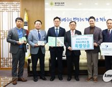 (케이엠뉴스) 김진경 경기도의회 의장(더민주, 시흥3)이 15일 의장 접견실에서 ‘2025년 크리스마스 씰 특별성금 전달식’을 실시했다. 결핵 예방과 퇴치를 위한 관심을 높이기 위해 열린 이날 행사에는 도의회 최종현 더불어민주당 대표의원(수원7), 임채호 의회사무처장 및 김영준 대한결핵협회 경기도지부 회장 등이 참석했다. 김 의장은 이 자리에서 2025년 크리스마스 씰을 증정받고, 특별성금 50만 원을 전달하며 결핵 퇴치에 함께하겠다는 의지를 다졌다. 김진경 의장은 “결핵 없는 건강한 경기도를 위해 그동안 많은 도민들께서 크리스마스 씰 한 장에 마음을 담아 우리 사회의 건강을 함께 지켜왔다”라며 “그 오랜 나눔의 전통이 올해도 이어지고 있는 것에 뿌듯함을 느끼고, 현장에서 애써주고 계신 대한결핵협회 경기도지부에 감사하다”고 밝혔다. 이어 “올해 씰에 담긴 ‘브레드 이발소’ 캐릭터들이 전하는 밝은 에너지처럼 결핵으로 힘들어하는 도민들께도 희망과 용기가 전해지길 바란다”라며 “경기도의회는 결핵의 예방과 퇴치를 위한 특별한 연대를 계속 이어나갈 것”이라고 강조했다. 한편, 대한결핵협회는 ‘결