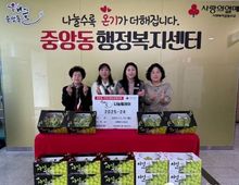 (케이엠뉴스) 오산시 중앙동 행정복지센터는 지난 10일, ㈜인슈프라자 오산지점 공혜란 지점장이 지역 내 취약계층 지원을 위해 샤인머스캣 2kg 30박스(약 150만 원 상당)를 기탁했다고 밝혔다. 공혜란 지점장은 오산시 중앙동 주민이자 22통 통장으로서, 주민등록 사실조사와 지역행사 참여 등 지역사회 발전을 위해 꾸준히 봉사해오고 있다. 특히 지난해에도 저소득층을 위한 백미를 기탁하는 등 지속적인 나눔 실천으로 따뜻한 지역공동체 조성에 기여하고 있다. 공혜란 지점장은 “경제적으로 어려운 가정의 아이들이 달콤한 과일을 먹으며 가족과 행복한 시간을 보내길 바라는 마음으로 기부했다”며, “주민이자 통장으로서 앞으로도 지역의 나눔문화 확산에 앞장서겠다”고 전했다. 이에 대해 백경희 중앙동장은 “항상 지역의 이웃들을 위해 따뜻한 마음을 전해주시는 공혜란 지점장님께 감사드린다”며, “기탁해주신 샤인머스캣은 저소득 한부모가정 등 취약계층에게 소중하게 전달하겠다”고 밝혔다.