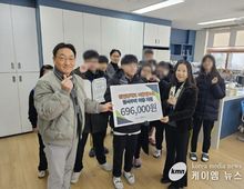 (케이엠뉴스) 오산남부종합사회복지관은 지난 6일 오산원일중학교 어울림교실 학생들이 마련한 후원금 전달식을 진행했다고 밝혔다. 어울림교실은 2023년부터 매년 지역사회 나눔 활동을 이어오고 있으며, 올해 역시 학생들의 자발적인 참여로 조성된 성금 69만6천 원을 복지관에 기탁했다. 이번 후원금은 지역 내 결식 위험 아동·청소년의 겨울철 식사지원 사업에 전액 사용될 예정이다. 이번 후원금은 어울림교실 소속 특수학급 학생들이 지난 1년간 진로·직업교육의 일환으로 운영한 교내 카페 활동을 통해 조성됐다. 학생들은 바리스타 교육을 받고 직접 음료를 제조·판매하며 실무 능력을 키웠고, 그 과정에서 발생한 수익을 스스로 지역사회에 환원하기로 뜻을 모아 나눔을 실천했다. 이는 특수학급 학생들이 교육의 수혜자에 머무르지 않고, 지역사회의 주체적인 구성원으로 성장했음을 보여주는 사례다. 정금 오산원일중학교 교장은 “학생들이 자신의 노력으로 얻은 결실을 이웃과 나누는 모습에서 큰 의미를 느낀다”며 “이번 경험이 학생들의 성장과 자립에 소중한 밑거름이 되길 바란다”고 전했다. 권태연 오산남부종합사회복지관 관장은 “특수학