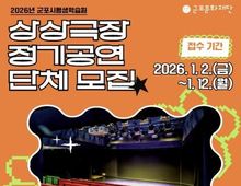 (케이엠뉴스) 군포문화재단 군포시평생학습원 상상극장은 어린이와 가족 관객을 위한 정기공연을 지속적으로 운영하며 지역 문화예술 기반을 넓혀가고 있다. 2026년에도 상상극장은 소극장의 특성을 살린 작품과 관객과의 호흡을 중요하게 여기는 공연예술단체를 모집해 보다 밀도 있는 공연 경험을 시민에게 선보일 계획이다. 이번 공모는 24개월 이상 유아부터 가족 관객을 대상으로 한 소극장 공연이 가능한 공연예술단체 및 기획사를 대상으로 한다. 연극·인형극·무용·전통연희 등 다양한 장르의 작품을 모집한다. 선정된 단체는 3월부터 12월까지 매달 진행되는 상상극장 정기공연을 통해 관객을 만날 예정이다. 선정 규모는 총 10개 단체다. 군포문화재단 전형주 대표이사는 “상상극장은 가족이 함께 공연을 경험하며 예술을 만나는 소극장 공간으로 공연을 함께 만들어갈 많은 공연예술단체의 관심과 참여를 기대한다”고 말했다. 공모 접수는 1월 12일까지 진행하며 지원 방법과 제출 서류 등 자세한 사항은 군포문화재단 홈페이지를 통해 확인할 수 있다.