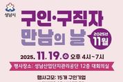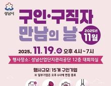 (케이엠뉴스) 성남시는 오는 11월 19일 오후 4시부터 7시까지 성남산업단지관리공단 12층 대회의실에서 ‘구인·구직자 만남의 날’ 행사를 진행한다. 이번 행사는 지역 산업단지 내에서 구직자와 기업이 직접 만날 수 있는 기회를 제공해 실질적인 고용으로 이어지도록 마련된 것으로, 총 15개 기업이 참여해 1:1 현장 면접을 통해 65명을 채용할 예정이다. 참여 기업(직종)은 상시근로자 5인 이상이면서 4대 보험 가입 사업장으로 △㈜현대에쓰앤에쓰(생산) △㈜네스트아이앤씨(생산) △㈜지디에스이엔지(생산) △아하스포츠코퍼레이션(물류관리) △주식회사 케어마스터(객실관리·미화) △주식회사 인우기전(전기·전원공사) △㈜네이스코(품질관리) △㈜잡위드(부품조립) △백제약품㈜(영업) △㈜더블유이엔지(엔지니어) △분당센트럴재활요양병원(조리원) △CJ씨푸드㈜(생산) △대원버스(승무) △조선호텔앤리조트(생산) △㈜파리크라상(생산) 등이다. 구직자는 이력서 등을 지참해 행사 당일 현장을 방문하면 희망 기업 부스에서 순서대로 면접을 볼 수 있다. 시는 구직자 취업을 돕기 위해 취업 컨설팅, 지문적성검사, 이력서 사진 무료 촬