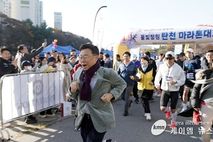 (케이엠뉴스) 신상진 성남시장은 15일 오전 오리공원 탄천변에서 열린 ‘물빛정원 탄천 마라톤대회’를 찾아 시민들의 건강한 여가 활동을 응원했다. 이날 행사에는 신 시장을 비롯해 국회의원, 도의원, 시의원, 성남YMCA 회원 및 가족, 시민 등 500여 명이 참석했다. 가천대 치어리더팀의 식전공연에 이어 개회식이 진행됐으며, 건강체조로 준비운동을 마친 후 출발 신호와 함께 본격적인 경기가 시작됐다. 대회는 5km와 10km 두 종목으로 진행됐다. 5km 코스는 오리공원 탄천변에서 출발해 돌마보도교까지, 10km 코스는 돌마보도교를 반환점으로 돌아 정자오작보도교까지 이어졌다. 신 시장은 축사를 통해 “아침 일찍부터 대회를 준비해 주신 모든 분들께 감사드린다”며 “어린아이부터 어르신들까지 많은 분들이 함께하셨는데, 순위와 상관없이 즐거운 하루 보내시길 바란다”고 말했다. 이어 “시는 30여 년간 혐오시설로 인식되던 구미동 하수처리장을 시민 모두가 누릴 수 있는 성남물빛정원으로 재탄생시켰다”며 “이곳에서 열리는 이번 대회가 더욱 뜻깊게 느껴지며, 앞으로도 성남물빛정원을 시민 건강과 힐링의 중심 공간이자 세