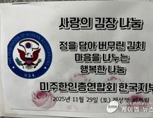 (케이엠뉴스) 한사랑학교(교장 김봉환)가 미주한인회총연합회 한국지부로부터 김치 11박스를 후원받아 따뜻한 나눔의 시간을 가졌다. 이번 후원은 김치 나눔 행사 일환으로 진행됐으며, 학교 구성원 모두가 참여하는 의미 있는 교류의 장이 됐다. 학교는 우선 전교생과 교직원이 함께 시식할 수 있도록 일부 김치를 제공하고, 이후 도움이 필요한 학생들을 중심으로 순차 배부할 예정이다. 이를 통해 모든 학생이 후원의 혜택을 고르게 누릴 수 있도록 세심한 배려가 이루어졌다. 한사랑학교는 이번 나눔이 지역사회와 학교가 함께 따뜻한 겨울을 만드는 뜻깊은 계기가 됐다고 강조했다. 특히 배부 과정에서 학생들이 사회적 배려와 공동체의 의미를 자연스럽게 배우는 교육적 효과도 기대된다. 김봉환 교장은 “지역에서 보내주신 따뜻한 마음이 우리 학생들에게 큰 힘이 된다”며 “앞으로도 지역사회와 함께 지속적인 나눔 문화를 확산해 나갈 수 있도록 노력하겠다”고 밝혔다. 한편, 한사랑학교는 특수교육 대상 학생들의 건강한 학교생활을 지원하기 위해 다양한 교육·복지 연계 활동을 추진하고 있다.