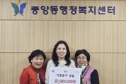 (케이엠뉴스) 과천시 중앙동 통장단은 지난 1월 9일, 중앙동 행정복지센터에 성금 100만 원을 기부했다. 이번 성금은 중앙동 행정복지센터 내 커피 자판기 운영 수익금을 모아 마련됐으며, 성금은 지역 내 취약계층 지원을 위해 사용될 예정이다. 중앙동 통장단은 이번 성금 기탁뿐만 아니라, 평소에도 지역사회를 위한 다양한 봉사활동에 앞장서 왔다. 지난 동지에는 직접 팥죽을 쑤어 어르신들께 전달하는 ‘이웃사랑 팥죽 나눔’ 행사를 진행했으며, 관내 복지관 등에서 정기적인 배식 봉사에도 참여하고 있다. 이명숙 중앙동 대표 통장은 “주민들이 오가며 마신 커피 한 잔의 수익금이 모여 어려운 이웃에게 따뜻한 밥 한 끼, 든든한 힘이 될 수 있어 매우 기쁘다”라며, “앞으로도 소외된 이웃을 살피고 돕는 일에 최선을 다하겠다”라고 소감을 전했다. 신윤희 중앙동장은 “행정의 최일선에서 주민과 행정의 가교 구실을 훌륭히 수행해 주시는 통장님들의 노고에 깊이 감사드린다”라며, “성금은 도움이 필요한 이웃들을 위해 소중히 사용하겠다”라고 말했다.