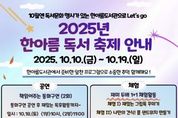 (케이엠뉴스) 수원시청소년청년재단 수원청소년문화센터 한아름도서관은 2025. 독서의 달을 기념하여‘한아름독서축제’를 10월 10일부터 10월 19일까지 운영한다. 이번 독서축제는 △스피치 강사와 함께하는 북토크 강연 △동화구연 공연 △재미 두배 1+1 체험활동 △원화 명화 전시 △도서관 이용자 대출 이벤트 등 청소년과 지역주민이 함께 공감하며 즐길 수 있는 다양한 프로그램으로 구성했다. △스피치 강사와 함께하는 북토크 강연 △동화구연 공연은 사전접수를 통해 참여가 가능하며, 재미 두배 1+1 체험 활동은 별도 접수 없이 현장에서 선착순 참여로 가능하다. 참가비는 전액 무료이다. 사전접수는 10월 1일 수요일부터 선착순으로 모집하며, 신청 방법은 수원시청소년청년재단 홈페이지‘한아름독서축제’안내문의 QR코드로 접속하여 신청할 수 있다. 한아름도서관은 이번‘한아름독서축제’를 통해 청소년과 지역주민의 독서 문화를 장려하고 도서관 활성화를 도모하고자 한다.