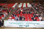 (케이엠뉴스) 안양시와 안양과천교육지원청은 지난 21일 15시 안양시청 강당 및 홍보홀에서 ‘2025 안양 미래교육협력지구 및 미리내공유학교 성장 나눔회’ 행사를 개최했다고 22일 밝혔다. ‘지역교육 협력을 통한 미래 글로컬 리더의 내일을 여는 축제’를 주제로 열린 이날 행사는 지속 가능한 안양 교육의 발전 방향을 모색하고 미래교육도시의 사회적 공감대를 형성하는 시간을 가졌다. 최대호 안양시장과 이승희 안양과천교육지원청 교육장, 관내 학교장, 교사, 학생, 학부모, 지역 교육기관 관계자 등 약 400여 명이 행사에 함께했다. 1부는 홍보홀에서 만남과 체험의 시간으로 미래교육 프로젝트 및 성장 이야기, 학생주도 활동 사례 등이 전시됐다. 또, 하이테크 드론, 세계시민 등 다양한 주제의 공유학교 체험부스도 열렸다. 2부는 강당에서 공유와 나눔의 시간으로, 안양미래교육협력지구 및 안양미리내공유학교의 운영성과 발표와 함께 2026년 발전 방향을 공유했다. 안양미래교육협력지구는 안양시와 안양과천교육지원청이 협력해 경제·금융교육 등 미래 역량 강화 프로그램과 희망창조학교, 우리고장 바로알기 등 지