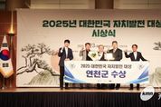 (케이엠뉴스) 연천군이 (사)한국자치발전연구원이 주관하는 '2025 대한민국 자치발전 대상'에서 기초자치단체 부문 수상자로 선정됐다. 시상식은 지난 23일 서울 용산구 백범김구기념관 컨벤션홀에서 개최됐다. 이번 수상은 연천군이 접경지역이라는 특수한 여건 속에서도 지역 자원을 활용한 독창적인 정책 추진, 주민 참여 확대, 맞춤형 행정 운영을 통해 지방자치 발전에 크게 기여한 공로를 인정받은 결과다. '대한민국 자치발전 대상'은 행정안전부 소관 (사)한국자치발전연구원이 주관하며, 국회의원·지방자치단체·의회·공무원·민간 부문 등에서 지방자치 발전에 기여한 개인과 단체를 선정해 시상한다. 특히 지방자치단체 부문은 단체의 업적을 중심으로 평가해 수여되며, 자치분권과 지역 혁신을 선도한 모범 사례를 널리 알리는 데 목적이 있다. 김덕현 연천군수는 “이번 수상은 연천군민과 함께 만들어낸 값진 성과”라며 “앞으로도 군민의 삶을 풍요롭게 하고, 지역 발전을 선도하는 자치행정을 지속적으로 펼쳐 나가겠다”고 소감을 밝혔다.