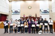 (케이엠뉴스) 연천군의회는 11월 13일 제298회 연천군의회 제2차 정례회 제1차 본회의에서 지역사회 발전과 주민복지 증진을 위해 헌신적으로 봉사해 온 모범 군민 13명에게 의장 표창장을 수여했다. 이번 표창은 연천군의 발전을 위해 묵묵히 힘써 온 군민들의 노고를 격려하고, 군민 참여와 나눔의 가치를 확산하기 위해 마련된 자리로, 연천군의회 의원들의 추천에 의해 지역의 다양한 분야에서 헌신한 이들이 한자리에 모였다. 수상자들은 지역 봉사와 복지, 교육, 경제, 환경 등 생활 전반에서 책임과 열정을 다하며 지역사회의 변화를 이끌어온 주역들이다. 이들의 꾸준한 노력은 연천군이 지속적으로 성장하고 발전하는 데 든든한 힘이 되어왔다. 표창 수여식은 본회의 개회에 앞서 진행됐으며, 김미경 의장을 비롯한 연천군수, 군의원 등이 참석해 수상자들의 공로를 축하하고 감사의 마음을 전했다. 연천군의회는 앞으로도 지역사회 곳곳에서 헌신하는 군민을 적극적으로 발굴하고, 군민 중심의 열린 의정 구현을 위해 다양한 소통과 참여의 장을 지속적으로 확대해 나갈 계획이다.