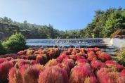 (케이엠뉴스) 주변 섬들의 이름과 지명을 알 수 있는 전경 안내판이 설치된 전망대에 올라서면 시원한 가을 바닷바람을 맞으며 서해안을 볼 수 있고, 다양한 가을꽃이 만개한 곳! 바로 경기도 안산 대부도 인근에 소재한 바다향기수목원이다. 추석연휴 기간을 맞아 자연의 싱그러운 녹음을 전해주고 있는 바다향기수목원에는 수목원 내 식재된 다양한 가을꽃과 함께 890개 국화 화분이 일제히 개화를 하고, 목화 1,200본과 붉게 단풍이 든 댑싸리 500개, 다양한 색상의 웨이브페츄니아와 로즈마리 1,100본이 가을의 색과 향기를 전하고 있다. 또한 ‘바다향기수목원 사용설명서’, ‘자연 속 숨은 보물찾기’, ‘속속들이 소나무’, ‘흙은 재미있는 우리 친구’ 등 다양한 숲 해설 프로그램이 가을철 수목원을 찾는 가족 단위 방문객들을 맞이하고 있으며, 연중 토요일과 일요일에 신청을 받아 운영되고 있는 ‘향나무 목걸이 만들기’, ‘불어라 피리’ 등의 체험프로그램 또한 관람객을 위해 준비되고 있다. 더욱이 수목원 내 염생식물원에 있는 ‘바다향기전시관’을 지역사회와 예술가를 위한 기획전시실로 개방해 10월 3일부터 12일까지 기획전시 및