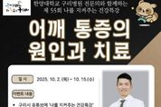 (케이엠뉴스) 구리시는 오는 10월 2일, 시민들의 근골격계 질환 예방과 건강관리 역량 강화를 위해 '어깨 통증의 원인과 치료'를 주제로 한양대학교 구리병원 마취통증의학과 박형준 교수와 함께하는 ‘나를 지켜주는 건강특강’을 구리시 공식 유튜브 채널(구리비전)을 통해 송출한다고 밝혔다. 현대인들은 장시간의 컴퓨터 사용, 스마트폰 과다 이용, 운동 부족 등으로 인해 어깨 통증을 호소하는 경우가 증가하고 있다. 어깨 질환은 흔히 단순 근육통으로 오인해 치료 시기를 놓치기 쉬우나, 방치하면 만성 통증이나 일상생활 불편으로 이어질 수 있어 조기 발견과 올바른 관리가 무엇보다 중요하다. 이번 특강에서는 △어깨 통증의 주요 원인 △잘못된 생활 습관과 예방법 △비수술적·수술적 치료 방법 △일상에서 실천할 수 있는 스트레칭 및 운동법 등을 알기 쉽게 전달할 예정이다. 시민들은 10월 2일부터 15일까지 구리비전 채널에서 강의를 시청한 뒤, 궁금한 사항을 댓글로 남길 수 있다. 이 가운데 우수 질문 3개를 선정해 박형준 교수가 직접 답변하고, 추가로 17명을 무작위로 추첨해 총 20명에게 모바일 쿠폰을 증정한다. 백